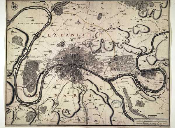 Carte des environs de Paris et de la Banlieüe de St Denis en France.